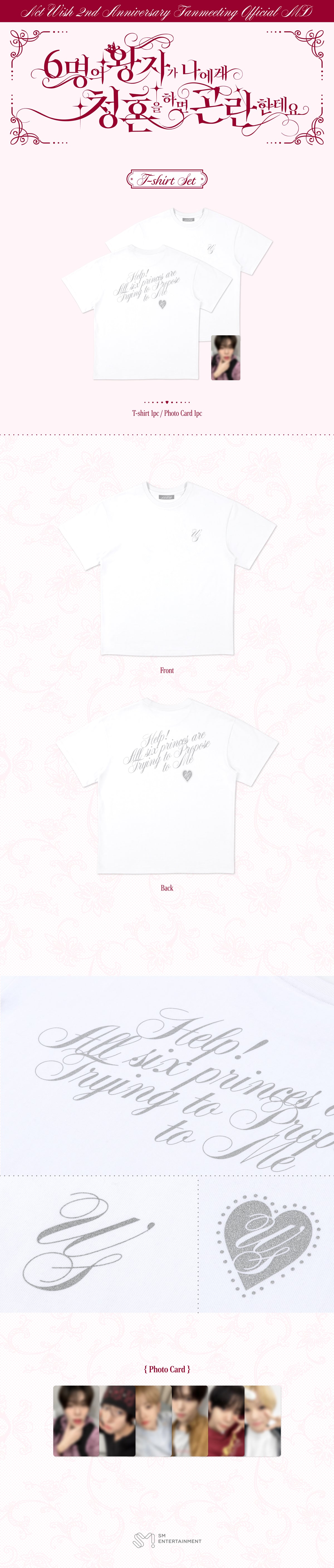 3) Size : T-Shirt Chest Circ. 119, Hem Circ. 120, Shoulder Width 59, Sleeve Length 21.5, Total Length 76.5, Photo Card 5.5 X 8.5 (CM)